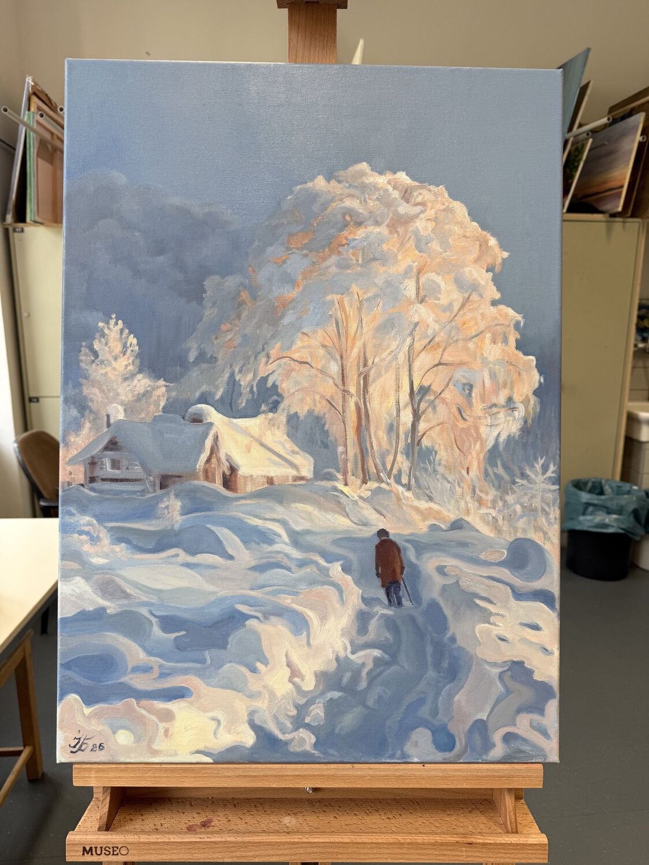 Winter landscape with a soft glow of snow. Silence and purity of the snow-covered Alps.